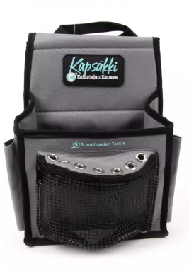Kalastajan Kanavan Kapsäkki - pitää kalastajan tarvitsemat tärkeimmät välineet veneessä aina käden ulottuvilla. Kapsäkki on kätevä kalastajan tarvikekassi. Kapsäkki toimii erinomaisesti kalastettaessa veneestä käsin. Kassin takana on on tarrakiinnike, jolla sen saa veneen kaiteeseen tai hankaimeen. Laita tärkeimmät työkalut kassin pieniin taskuihin, isommat päätaskuun ja erikoisemmat verkkotaskuun. Kalasta pois lähdettäessä laukku lähtee helposti mukaan kätevän tarrakiinnityksen ansiosta. Materiaalit 1000D ja 600D polyesteriä. Renkaat rosteria.