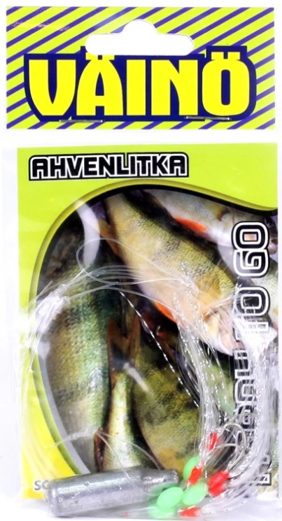 Käyttövalmis ahvenlitka 5 koukulla. Sisältää painon.