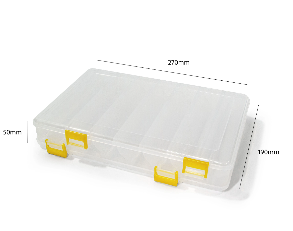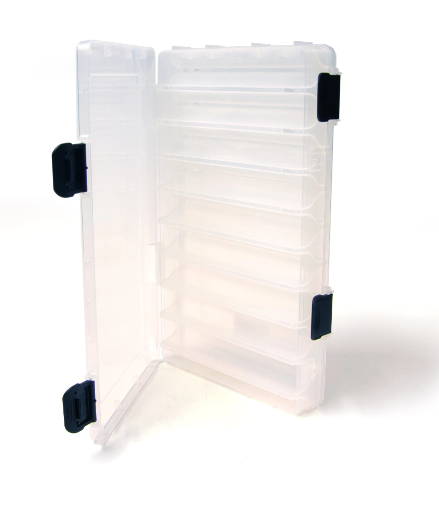 Kaksipuoleinen vieherasia johon pakkaat kätevästi vieheet mukaan. Asetelma säästää huomattavasti tilaa. Rasiaan saa suuren määrän vieheitä ja se menee esim. laukussa tai repussa pieneen tilaan.