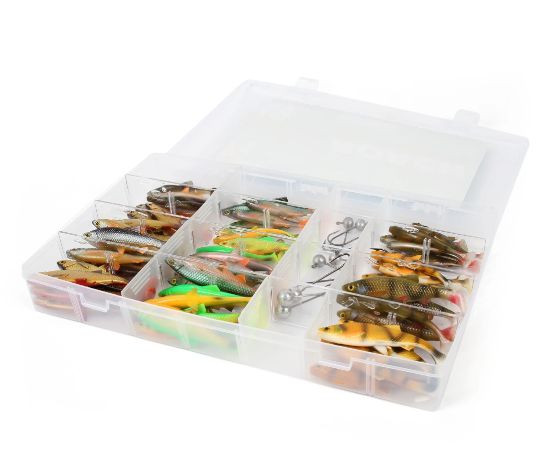 Shaker Baits Maxi Mad Roach jigisarja sisältää erinomaiset Mad Roach jigit, jotka on tarkoitettu erityisesti ahvenen ja kuhan kalastukseen. Sarjasta löydät juuri oikeat koot, parhaat värit sekä laadukkaat jigipäät, joilla petokalat nappaavat 100% varmasti. Kaikki nämä on laitettu hienoon ja tilavaan vieherasiaan. Sarjan jigit ovat jo entuudestaan Suomessa tunnettuja, Shaker Baitsin Mad Roach, särkeä jäljitteleviä jigejä. Laaja väriskaala sekä useita kokoja! Sarjassa yhteensä 106 osaa.